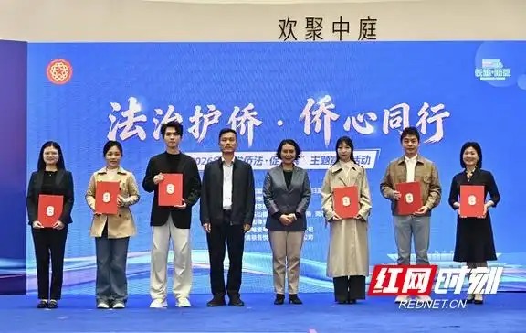互动区工作人员正在介绍相关情况。活动现场还设置了“法·护侨”“联·侨心”“智·汇侨”三大互动区,打造了“可参与、可对接、可体验”的侨界服务平台。参与者可通过盲盒问答形式学习“一法两办法”知识点,并填写侨法问卷,提出意见建议;侨资企业可现场咨询企业入规流程、涉侨纠纷多元化解机制、金融政策等事项,多方面为企业赋能。黄重华指出,近年来,省侨联持续推进“法侨合作”“检侨合作”,联合法院、检察院、司法行政和律师团队,推动调解、仲裁、法律援助等资源下沉基层,构建了聚焦国内、联通四海的普法宣传和维护侨益工作网络。下一步,省侨联将一如既往地向广大侨界群众宣传中国特色社会主义法律体系,认真履行依法维护侨益职责,持续深化侨联系统改革创新,及时回应侨胞在投资、教育、财产保护等方面的法律诉求,努力打造归侨侨眷和海外侨胞值得信赖的温暖之家,让侨企敢投、侨胞安心、侨智涌流,助力湖南高质量发展。此次“法治护侨·侨心同行”主题活动是“十五五”开局之年推动侨法宣传走深走实的重要举措,有效提升了侨界群众的法律意识和依法维权能力,进一步凝聚了侨心、汇聚了侨智、发挥了侨力,为全面依法治国向纵深推进贡献侨界力量。举报/反馈