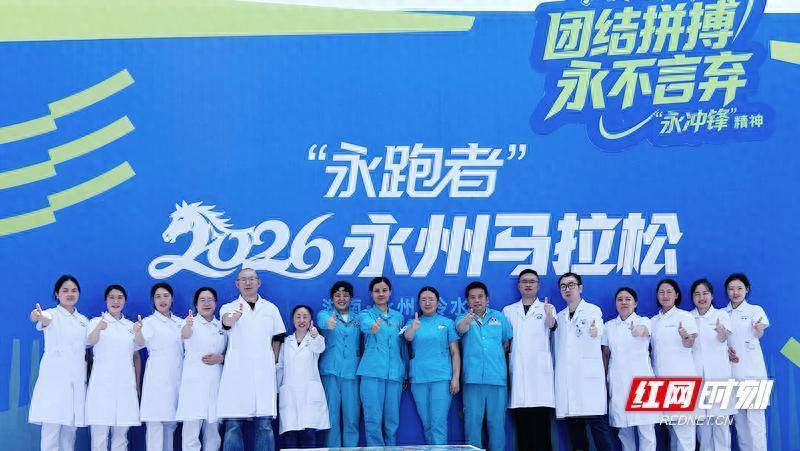 红网时刻新闻4月19日讯(通讯员 阳英 郭杰)4月19日,“永跑者”2026永州马拉松在湘超冠军城燃情开跑。永州职院附属医院(永州市第一人民医院)作为此次赛事医疗保障的中坚力量之一,医院领导高度重视,制定了详细的医疗保障应急预案,为全体参赛选手筑起了一道坚实的“健康防线”。